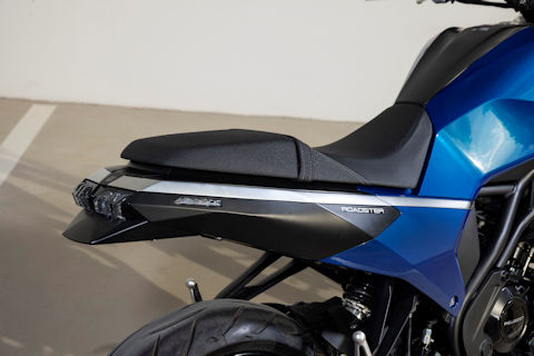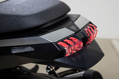 Die Heckpartie mit ihrer einzigartigen, feingliedrigen LED-Leuchte, den unaufdringlichen Blinkern mit ihren Designanleihen am SUV 3008 oder 5008 und dem kompakten Spritzblech mit Kennzeichenhalter steht dem in nichts nach. Mit Stil, Eleganz und sportlichem Design: Sie sind am Lenker der PM-01 einzigartig